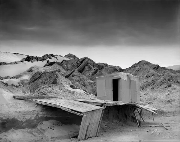 When he gets back to Seattle, Valenzuela will alter the material he gathers on this drive, transforming this sun-baked desert panorama into an illusory landscape, sceneries digitally stitched together from multiple photos or videos. A previous expedition produced tonally-rich, five-foot-wide black and white photographs of arid plateaus strewn with toothy rocks, derelict shanties under mercury-bright skies, nonsensical rubble and strange pyramidal cinderblock formations. The photographs were edited so meticulously that you can’t tell anything has been changed—or that these surreal places aren’t real at all.