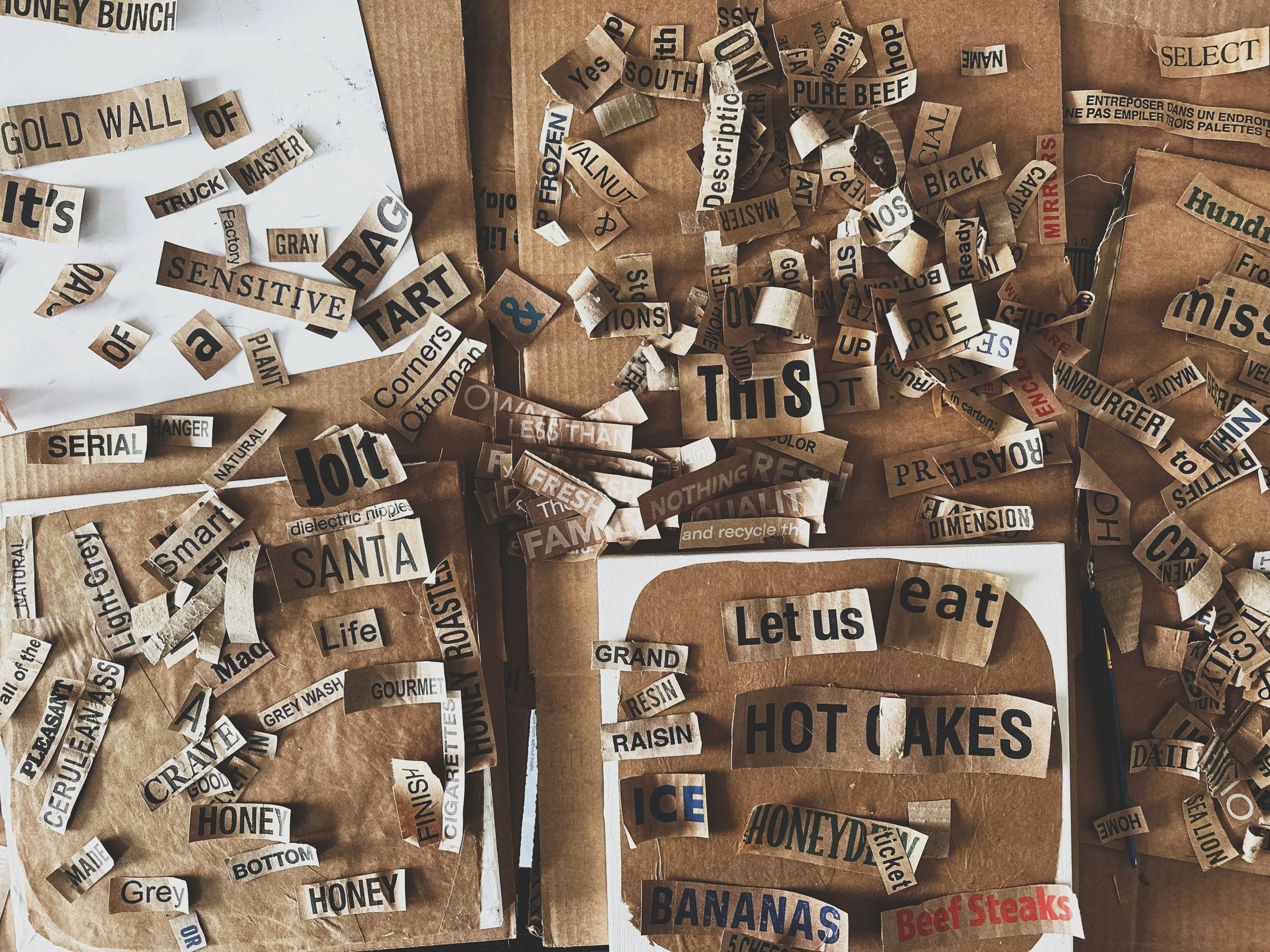 A collection of text-based works created during four months culling boxes from a materials sorting facility. Not quite paintings or poems, they are descendants of poetry concrete, with words scraped, stripped, rebuilt, sealed in gloss, redolent of a poetics of consumption, seduction, and instruction inherent to packaging.