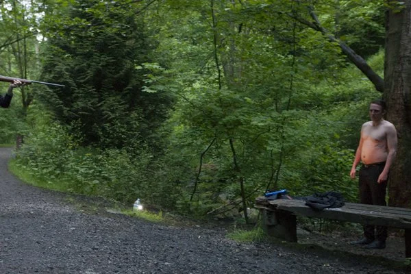 Already it’s a point of contention amongst both Mitchell’s lovers and detractors. “Unethical! Outrageous! Pointless!” Mitchell’s private performance was a reenactment of Chris Burden’s 1971 Shoot, in which an assistant shot Burden in his left arm with a .22 caliber rifle from a distance of five meters. Burden’s Shoot took place at a gallery. Mitchell’s in a wooded park at dawn.