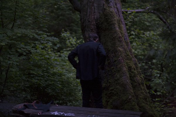 Instead of sleeping for a few hours, I decided to just stay up all night. By the time 4 am rolled around, I was buzzing on diet Rock Stars and starting to feel a little spaced out, which may or may not have been the perfect half-blotto state in which to witness whatever it was we were gathering to see. When we arrived at Carkeek, it was still dark. There were only four of us. We followed a trail till we arrived at a large, old tree and a wooden bench. We were told to stop. We waited. Waited. Eventually Mitchell arrived on foot, followed by a small procession of six or so members of Saint Genet. One was carrying a rifle case. They stopped at the tree. Everyone lined up along the path facing Mitchell, who stood in front of us unbuttoning his shirt. He turned his back.